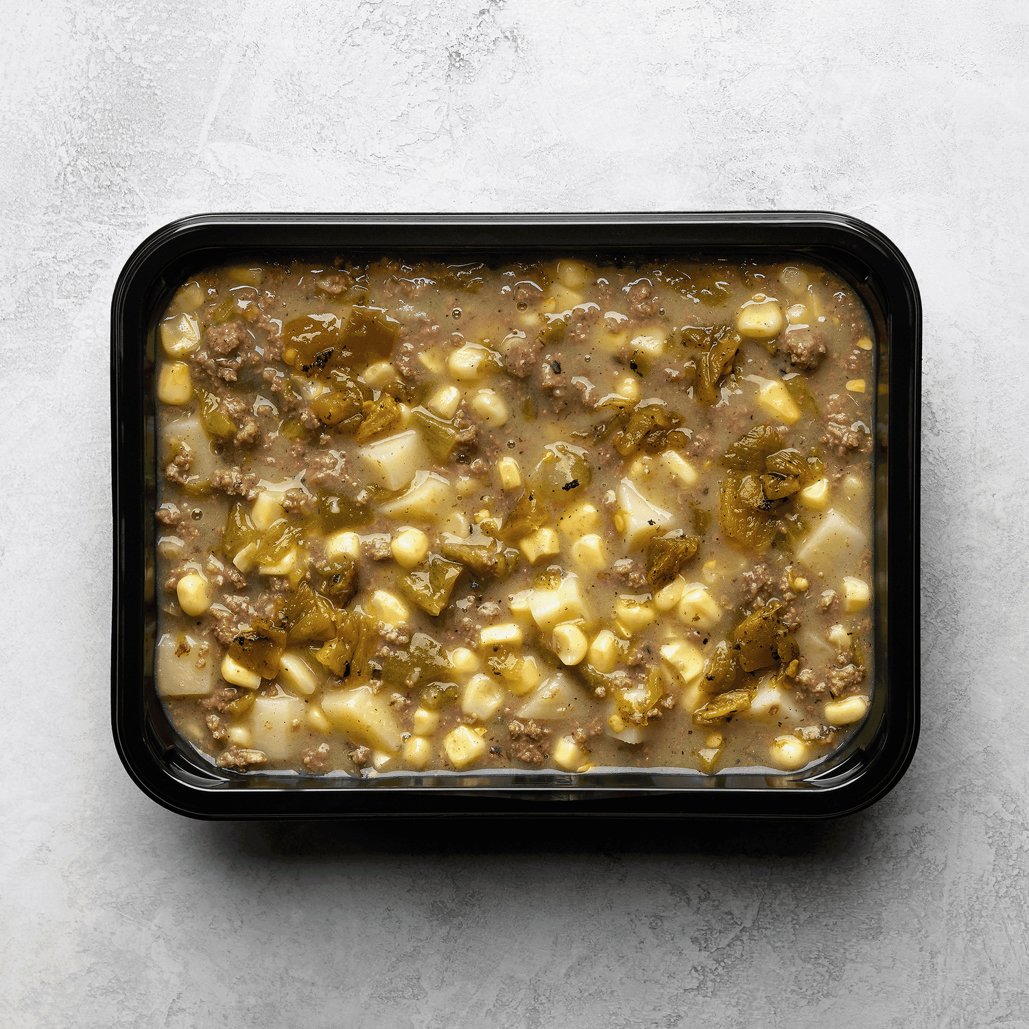 Fire-roasted green chilis, seasoned ground beef, diced russet potatoes and sweet corn slow-cooked to create a hearty, homestyle stew.